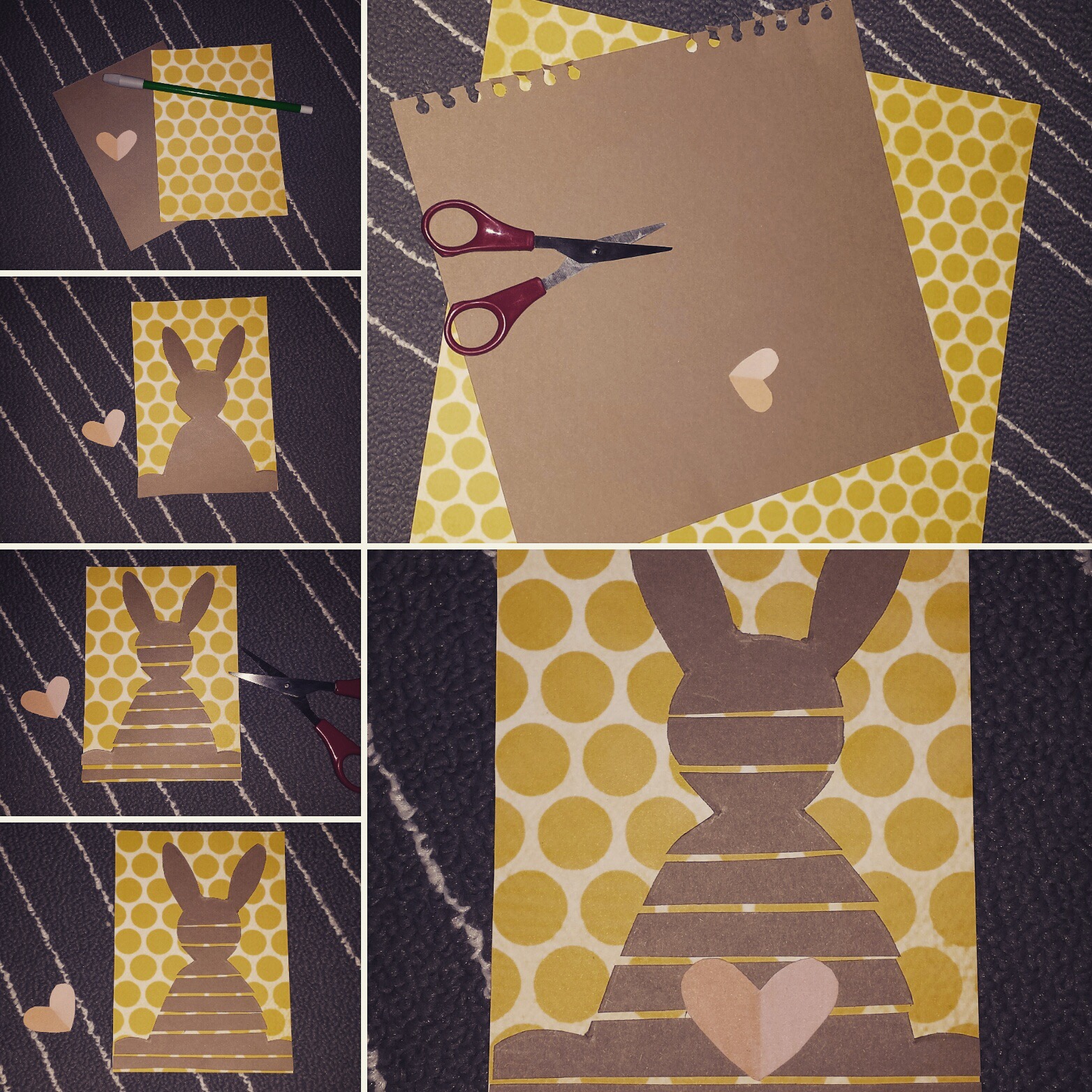 - Karton-Häschen in Streifen schneiden und auf die Scrapbook-Karte kleben.
