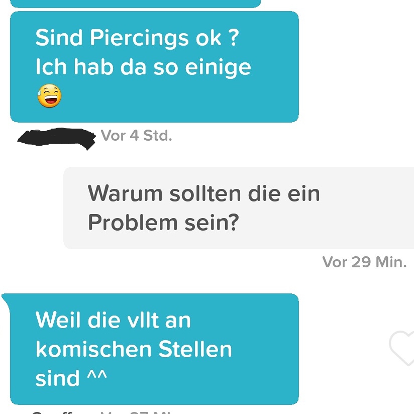 Neues Match, neues Glück. Diesmal hat das muntere Wischen mit Leon geklappt. Leon ist Ende Zwanzig, arbeitet irgendwas Pädagogisches, besitzt augenscheinlich einige Piercings & Tattoos und scheint ein gutes Gedächtnis zu haben. Denn nach kurzem „Hallo, wie geht’s“-Pingpong, fragt er mich, ob ich nicht im vergangen Sommer auf Wohnungssuche gewesen sei. Dem war so und…… Weiterlesen Tinder meets WG-gesucht.
